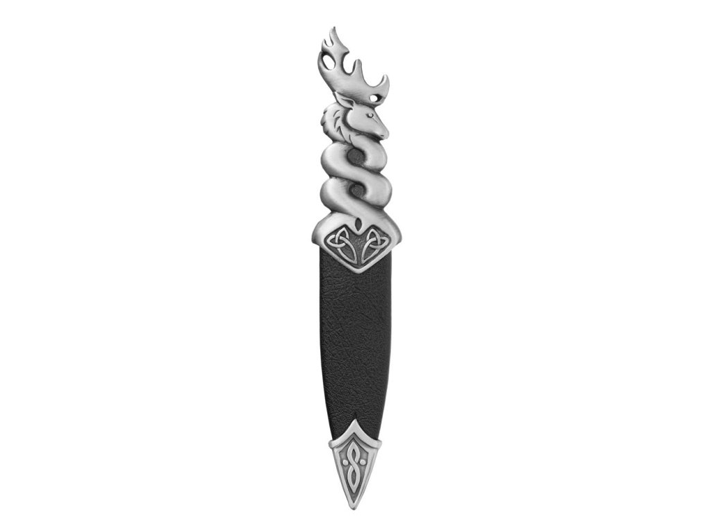 Moderní Sgian Dubh s rukojetí ve tvaru ornamentu s jelenem v matném provedení.