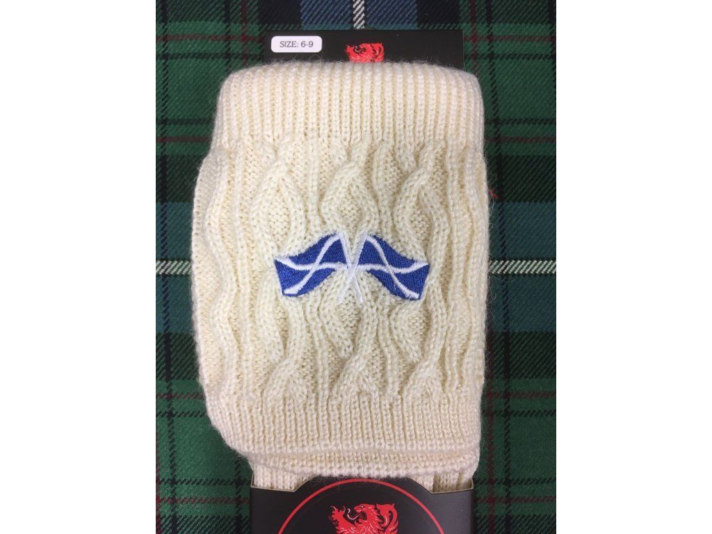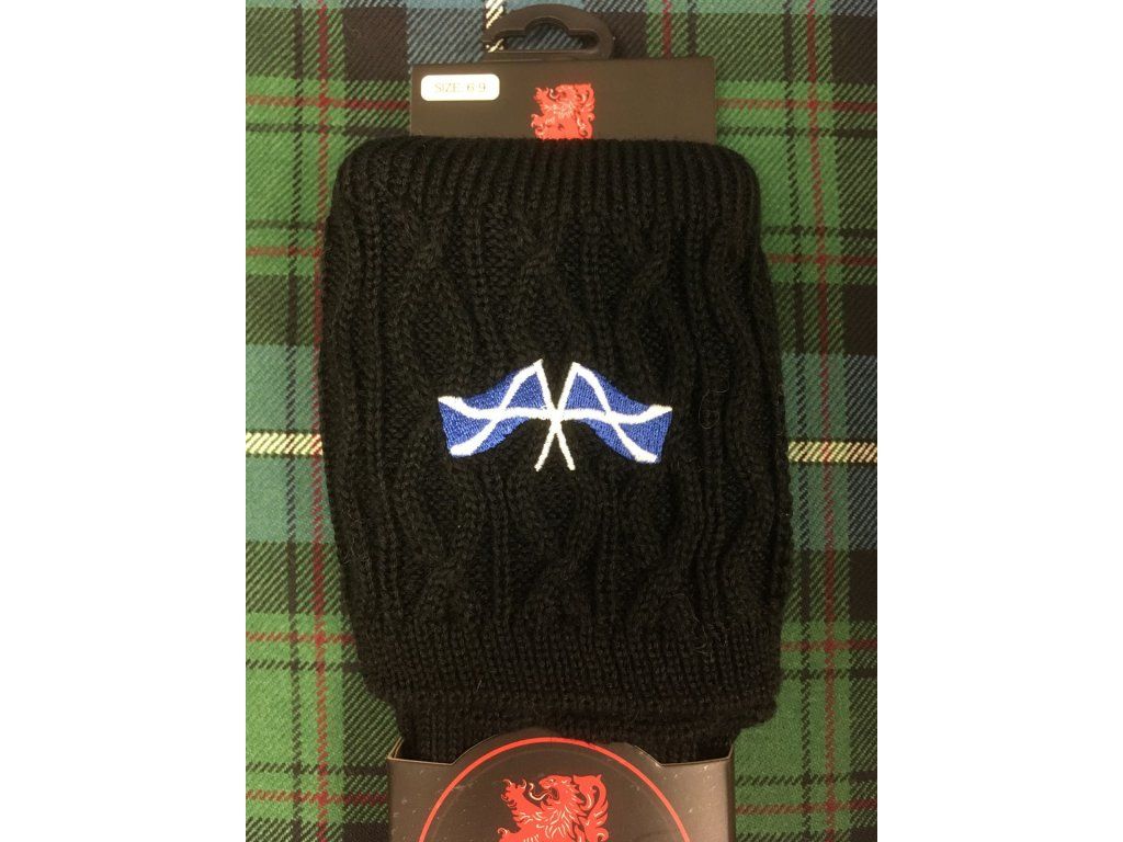These knee-highs, featuring a bold Celtic pattern on the cuff and Scottish Flags themed embroidery, are the perfect addition to any kilt outfit. Thanks to the extended knit at the top, they can be easily folded over the suspenders ("flashes"), ensuring they stay in place all day.