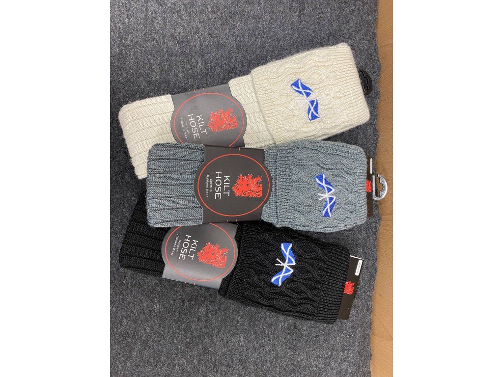 Harris Kilt hose with embroidery - Scottish flag