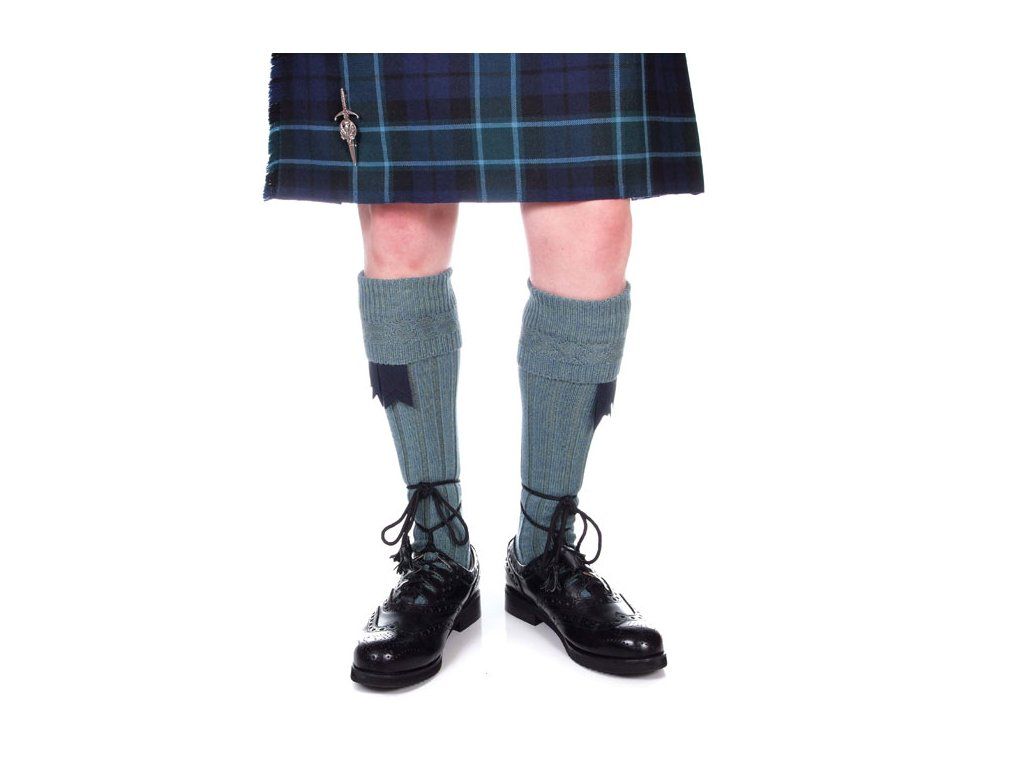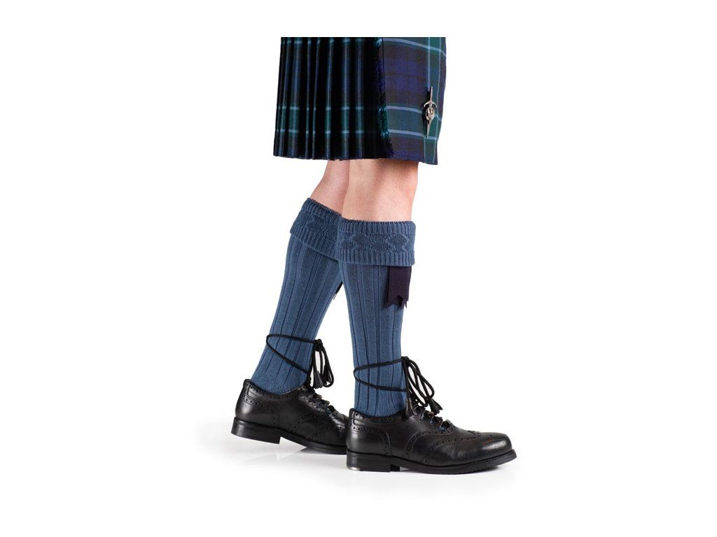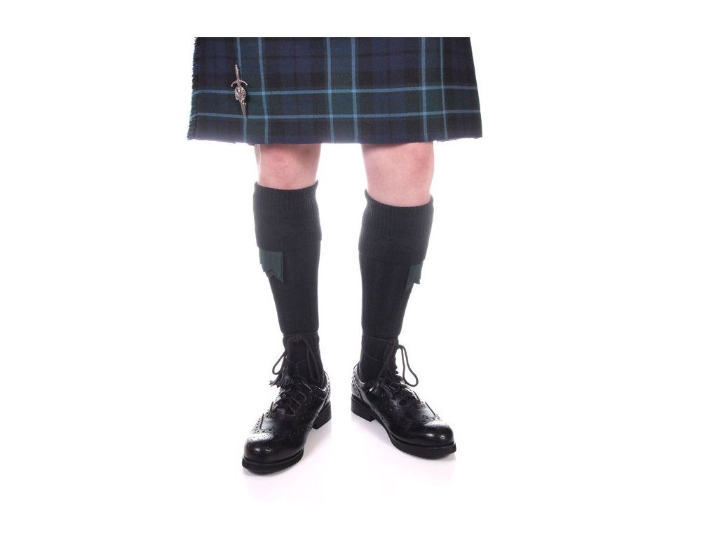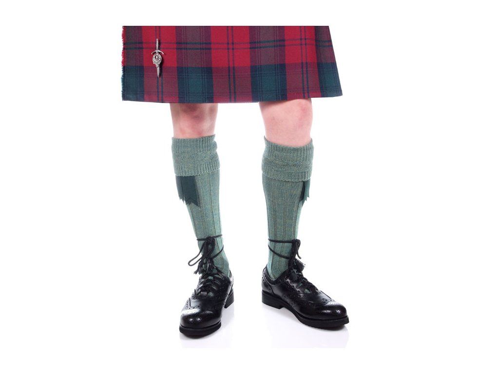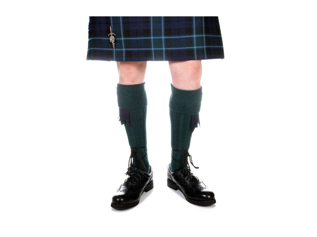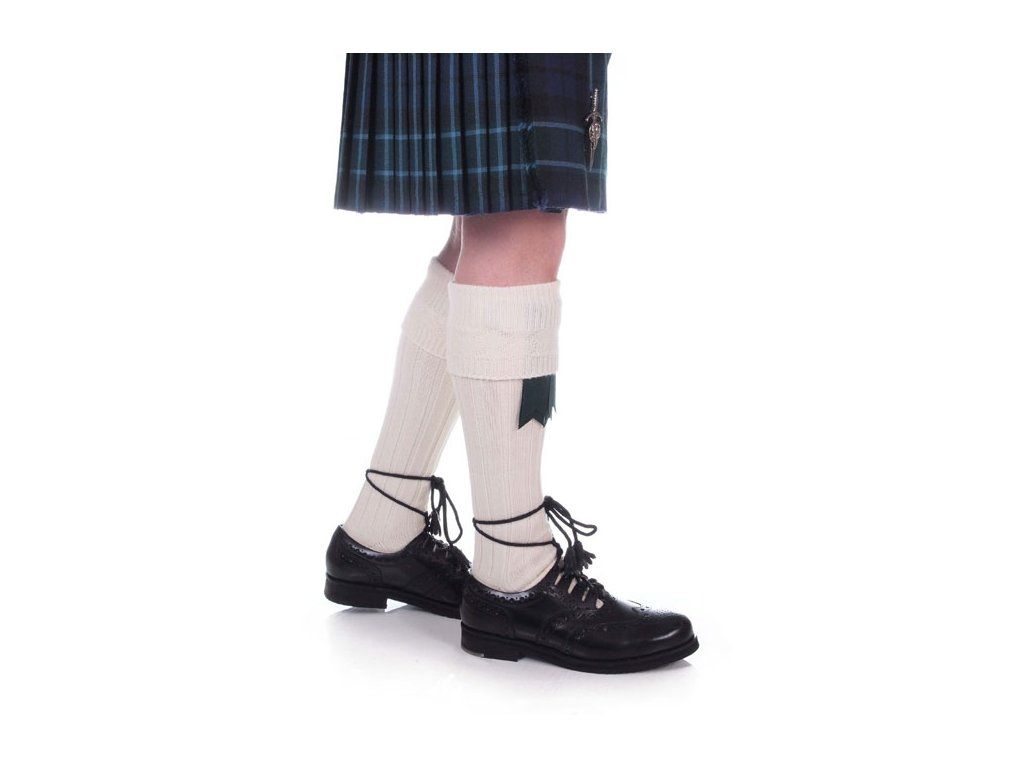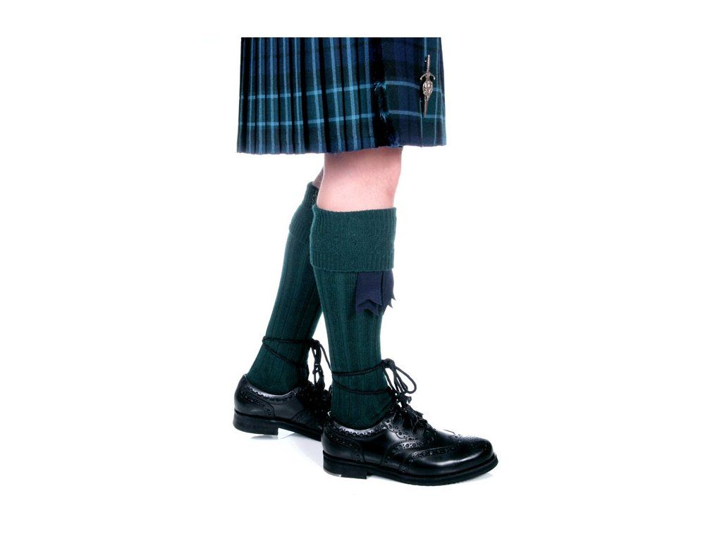Traditional style kilt hose for kilts. The extended knit at the top allows the knee socks to be tucked over the suspenders – "flashes" – so they don't slip down when walking.