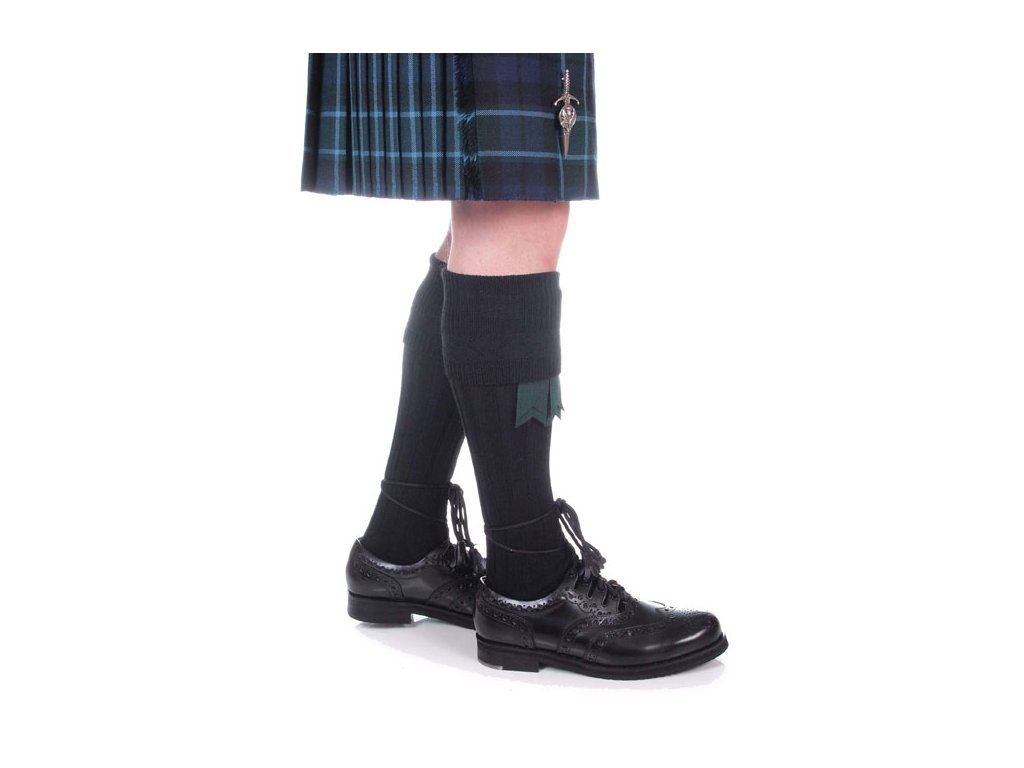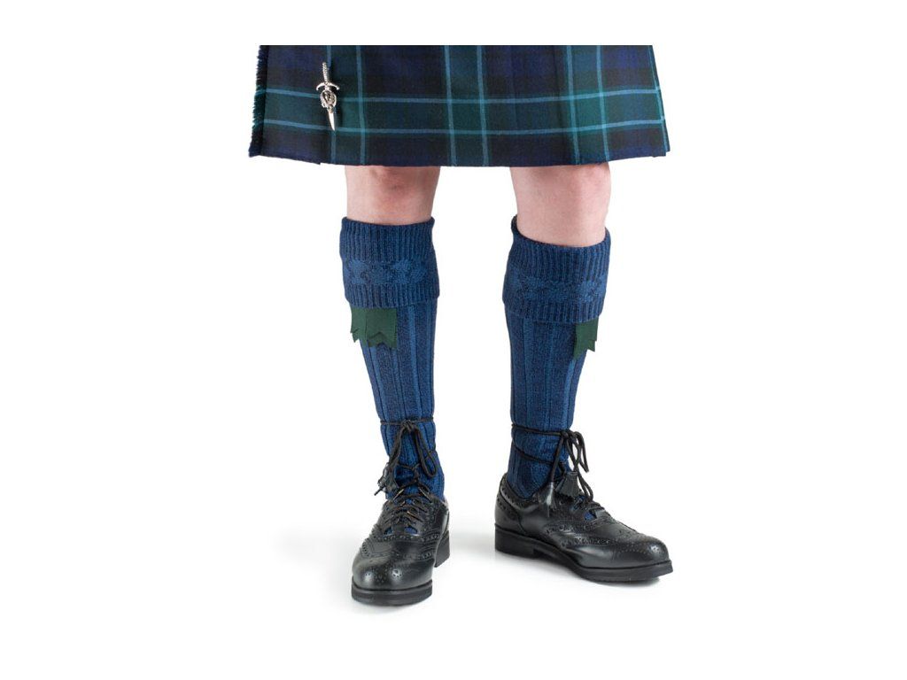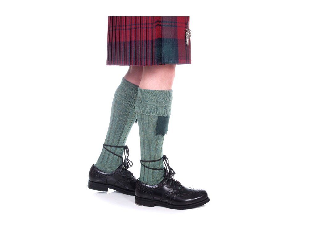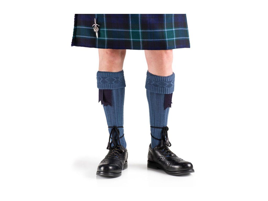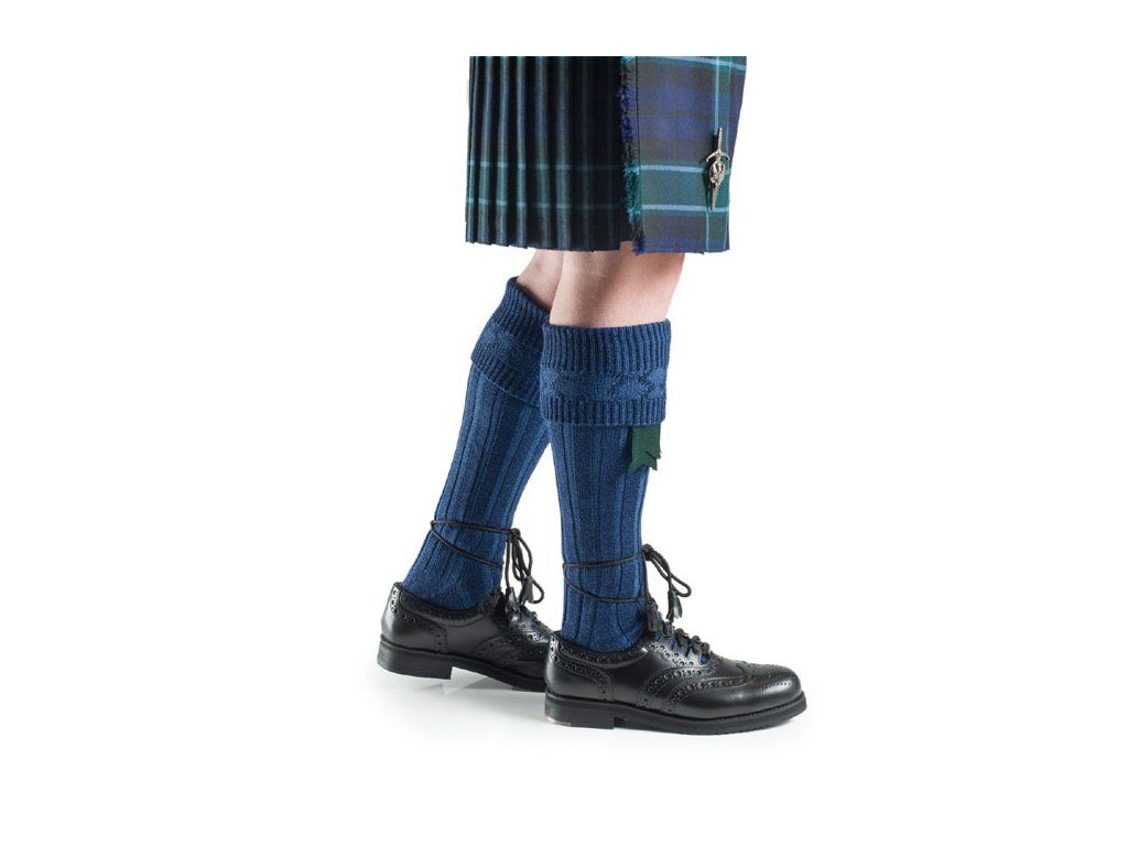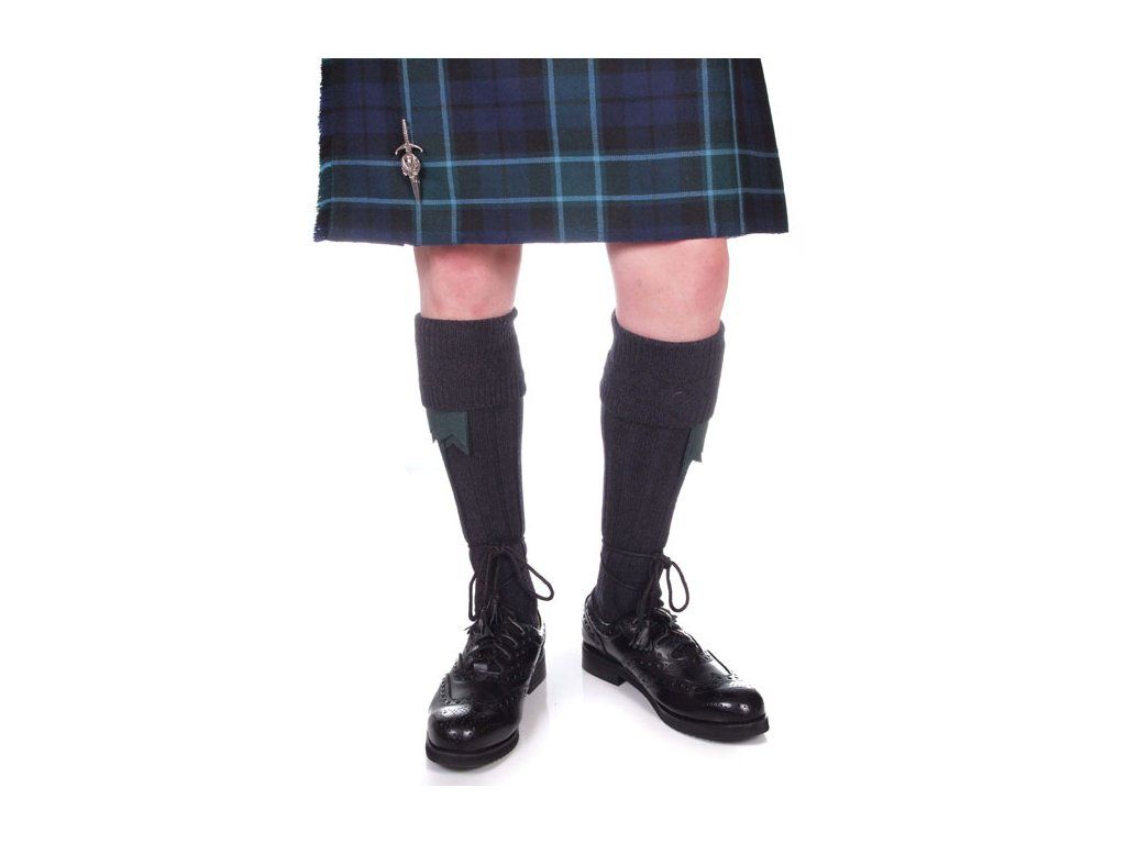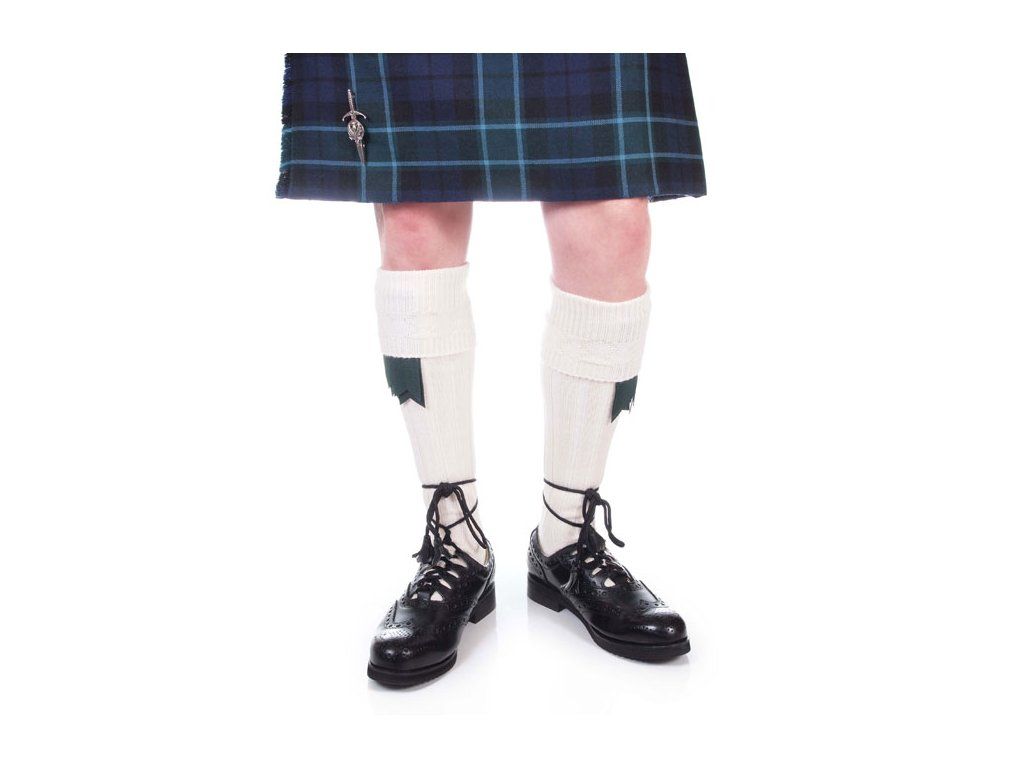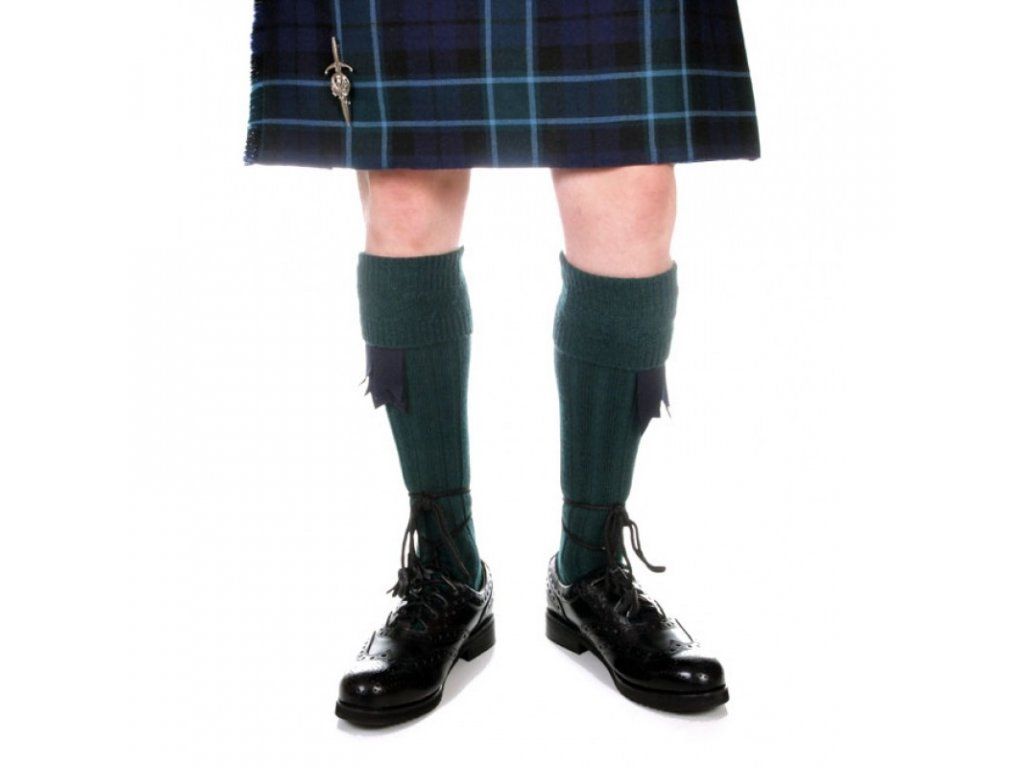 Traditional style kilt hose for kilts. The extended knit at the top allows the knee socks to be tucked over the suspenders – "flashes" – so they don't slip down when walking.
