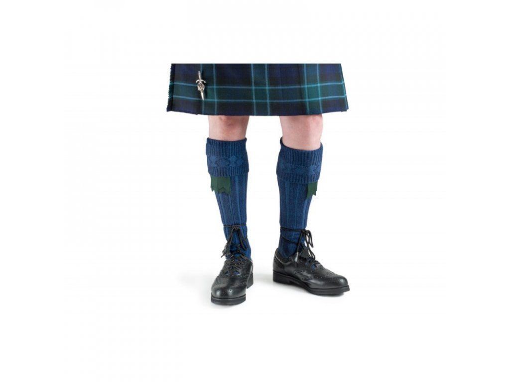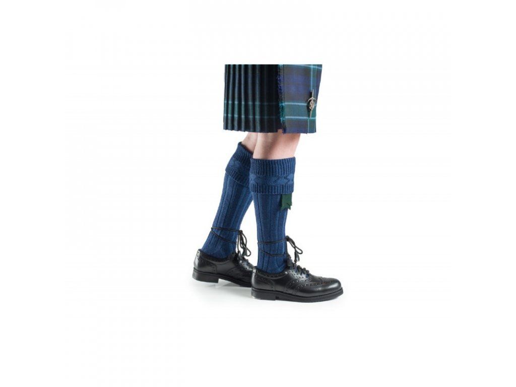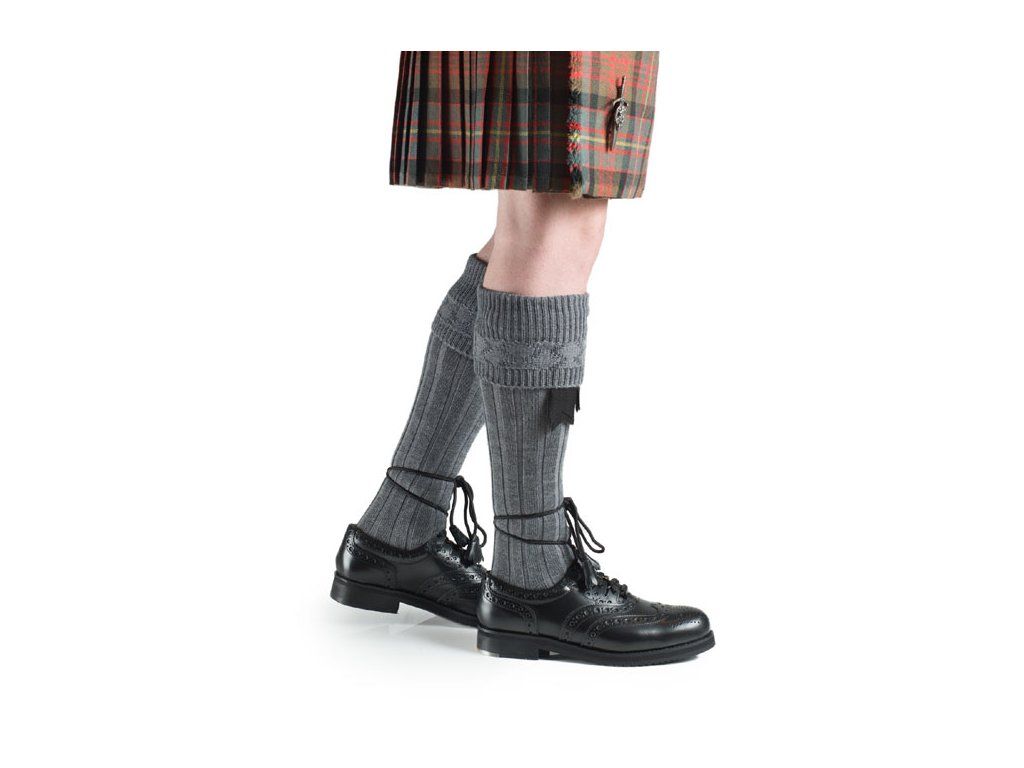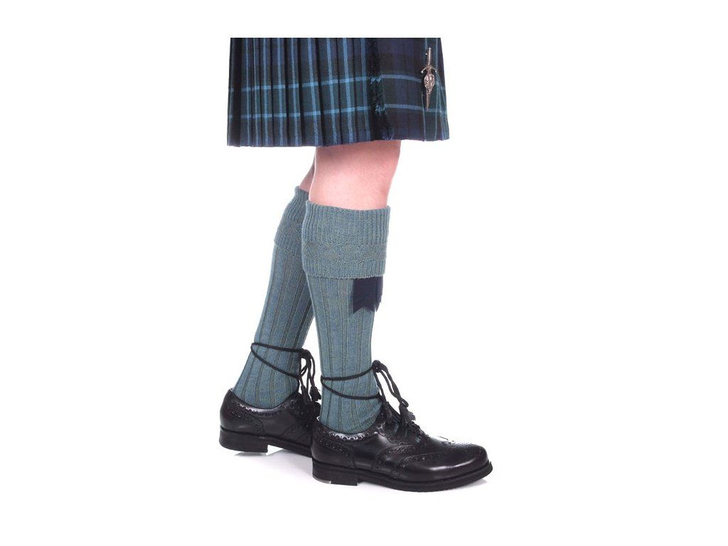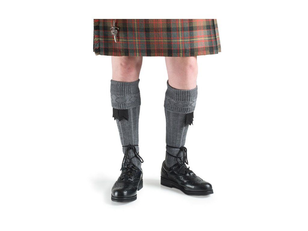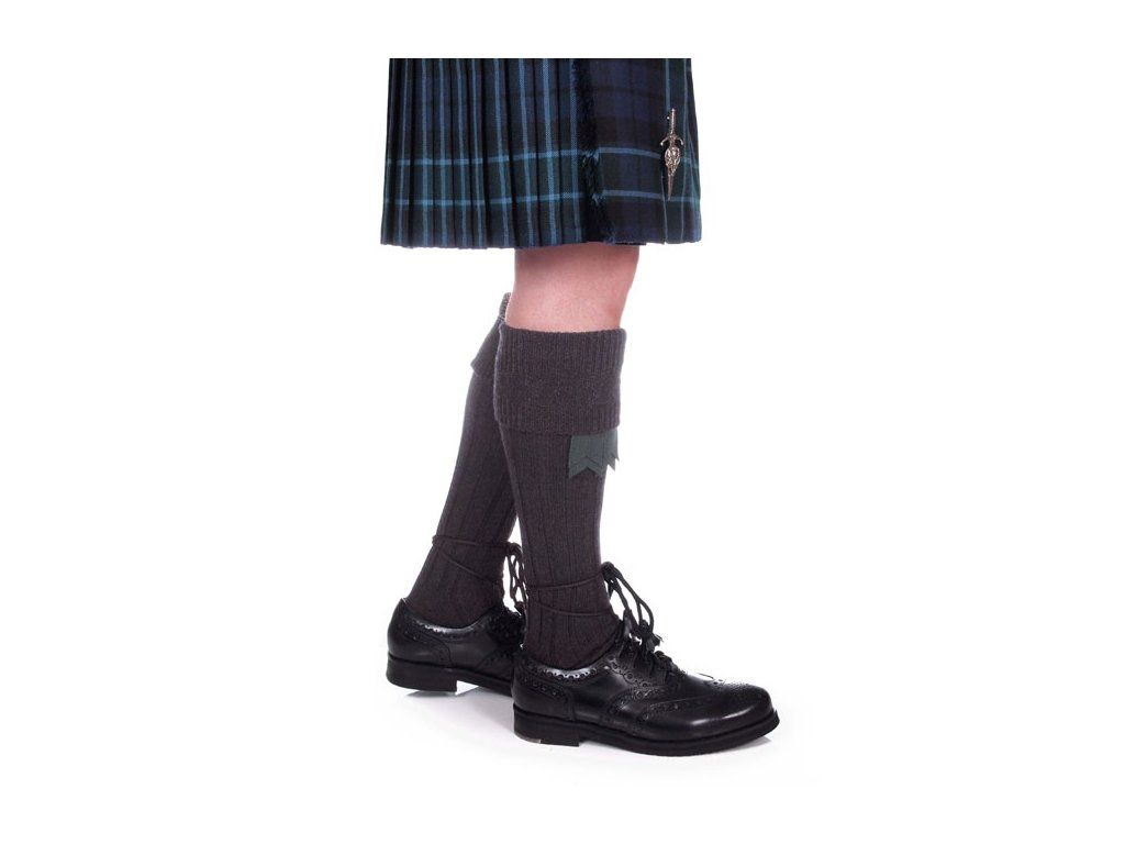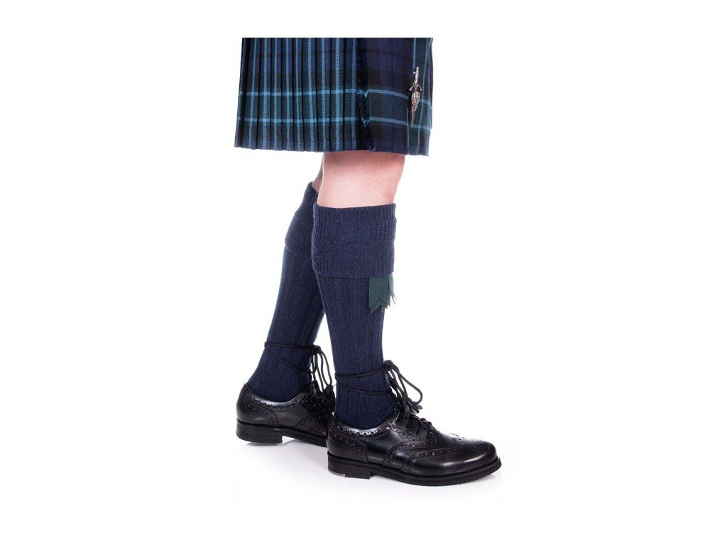 Traditional style kilt hose for kilts. The extended knit at the top allows the knee socks to be tucked over the suspenders – "flashes" – so they don't slip down when walking.