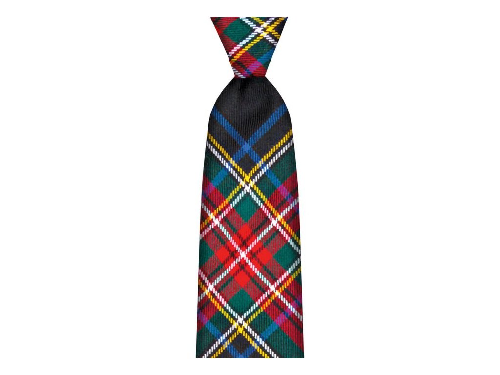 Pánská tartanová kravata BLACK Stewart – 100% vlna, vyrobeno ve Skotsku
